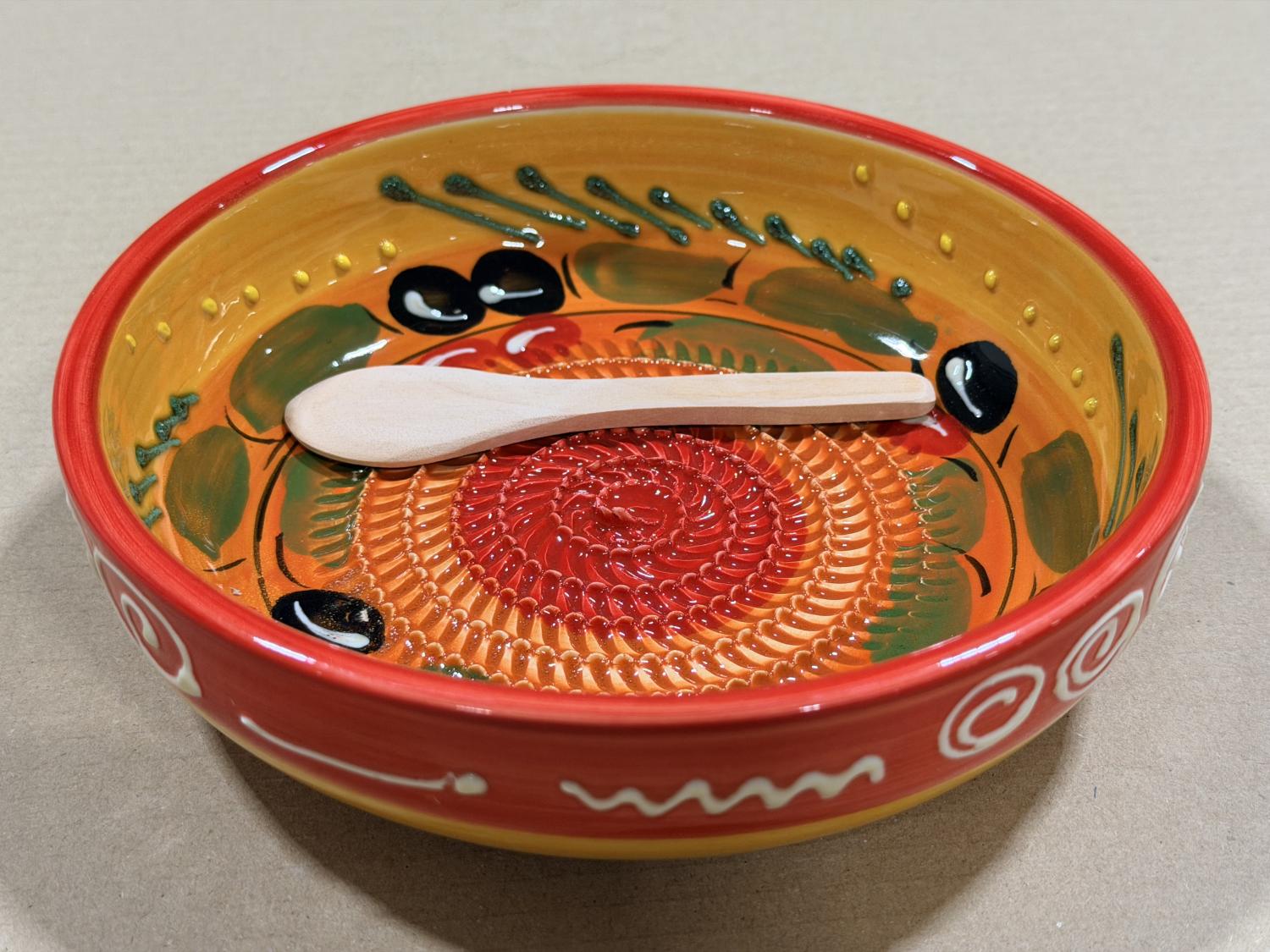 Handdrejade och fantastiskt fina handmålade unika rivskålar från Malaga. Riv tex vitlök, tomat, chili eller ost till maten direkt på fatet. Eller riv choklad eller jordgubbe till efterrätten.